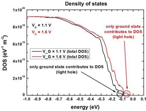 hole density of states (DOS) of a Si hole channel (triangular potential)